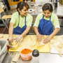 Hot Bread Kitchen graduate and product coordinator Marie Poisson divides focaccia dough.