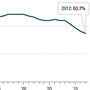 - In 2007, 66 percent of Americans over age 16 either had a job or were looking for one. Today, that is down to 62.8 percent, the lowest labor force participation rate since 1978.